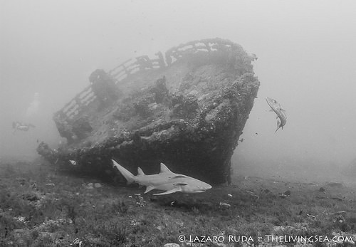 A lemon shark swims alongside a ship wreck in West Palm Beach, Florida. Numerous sharks can be found during the winter months in these waters.