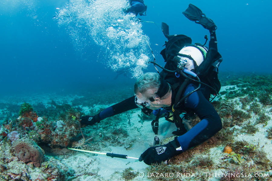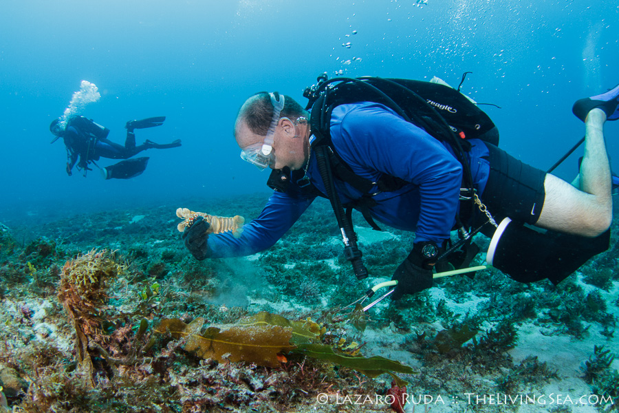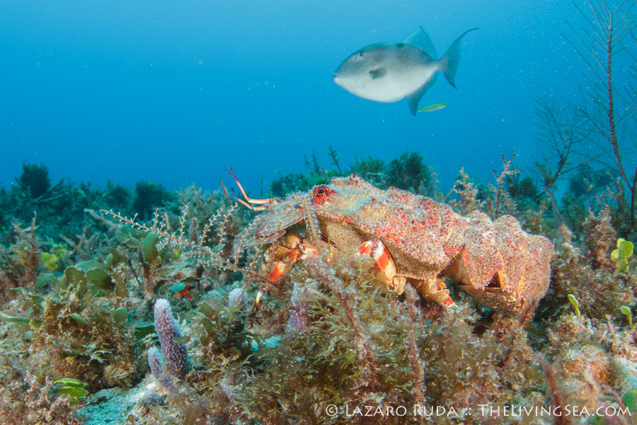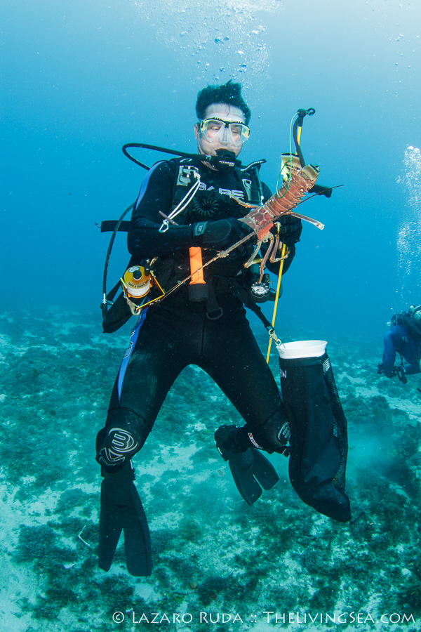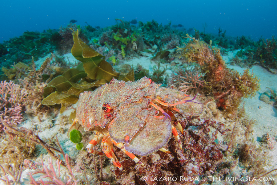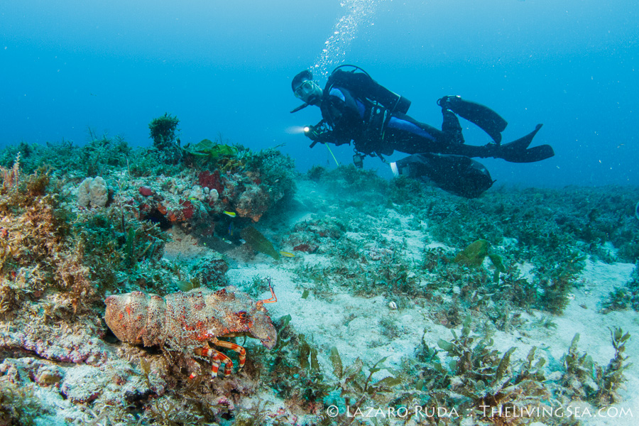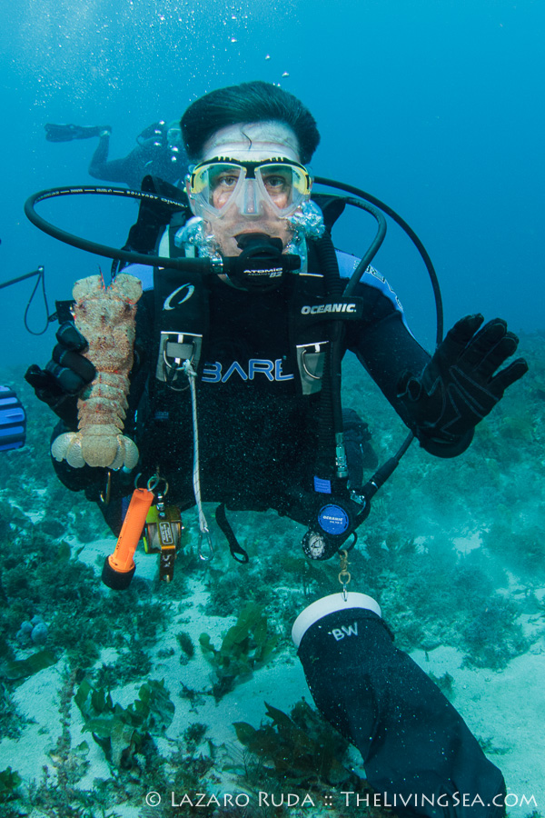 I tagged along with them to get photographs of these divers in pursuit of these tasty crustaceans. Along the way we encountered numerous marine life including a bull shark, hawksbill sea turtle, a gorgeous anemone, eels, and more. These lobster hunters were even kind enough to let me spend a little quality time photographing a beautiful slipper lobster before letting it go.
